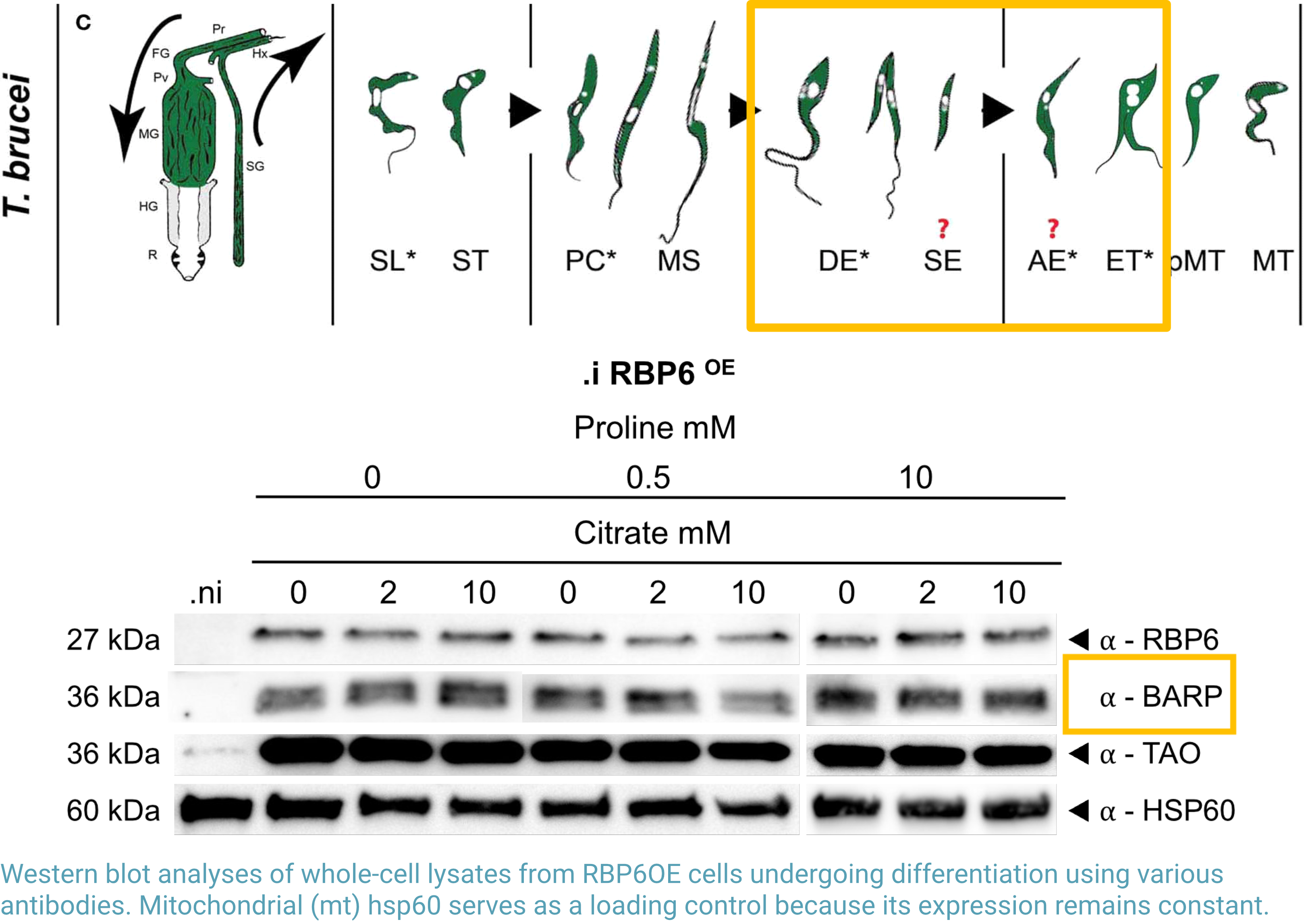 Équipe F. Bringaud, MFP, U. BordeauxRBP6: RNA binding protein 6; BARP: brucei alanine-rich protein; TAO: Trypanosoma alternative oxydase; hsp60: heat shock protein 60.