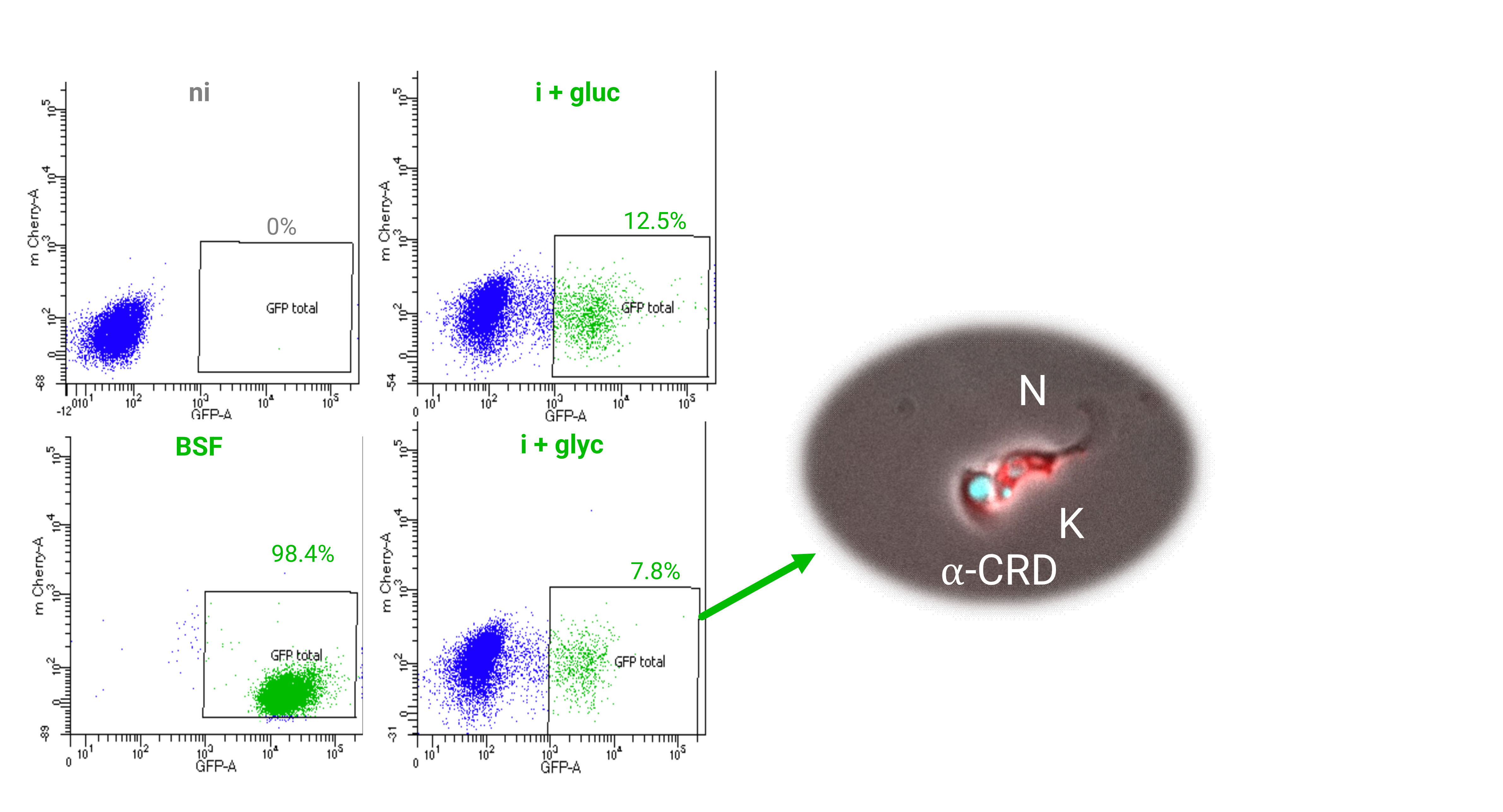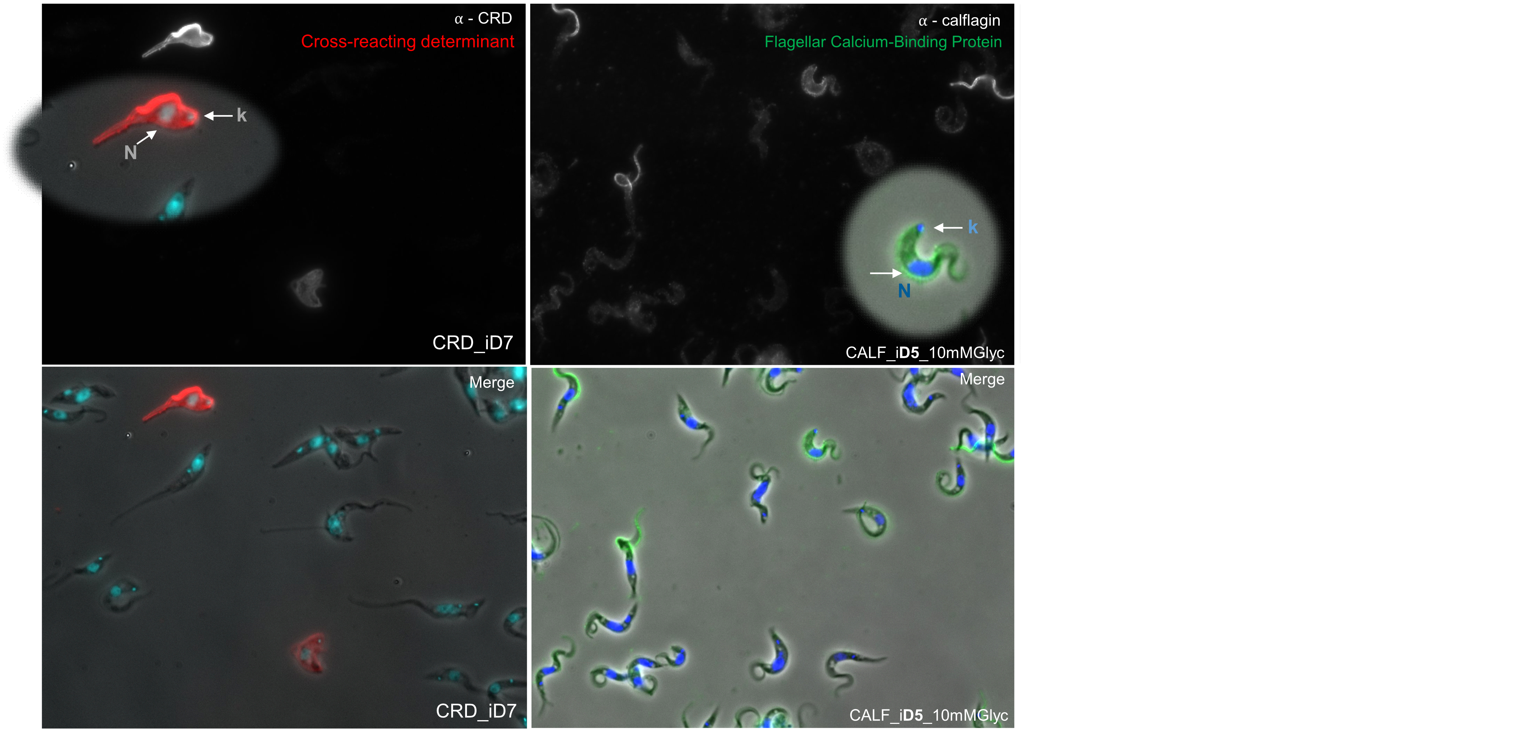 Culture induced to express TbRBP6. Rabbit α-CRD and secondary anti-sera goat α-rabbit AlexaFlour® 488